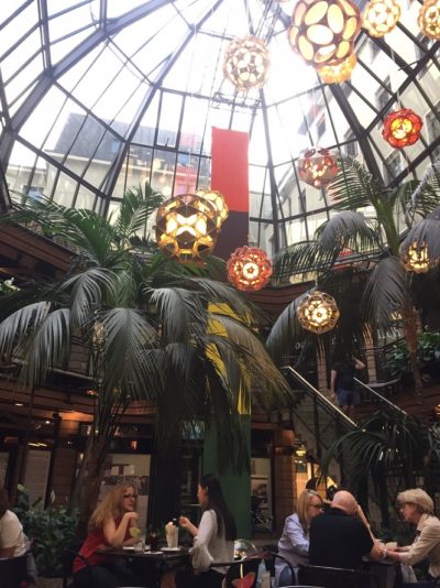 ここは、上のプレッツェルとレーバーケーゼを食べたカフェ。ミュンヘン市内。温室風の作りになっているところがいいね。