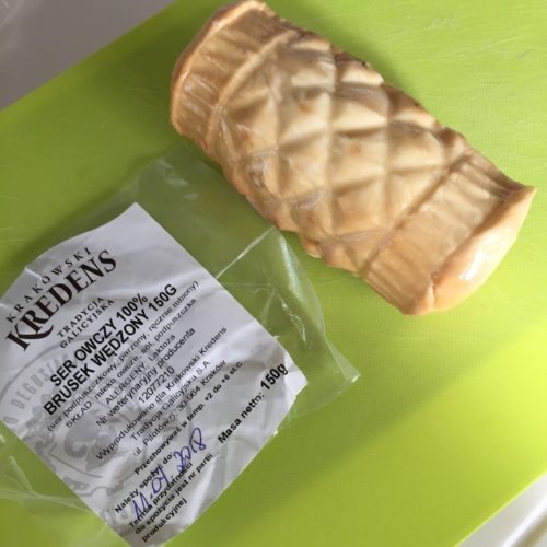 このメーカーの製品には、紐状にしたチーズを編んだものもある。とても珍しい。クラクフのある地方の伝統的なチーズなんだろうか。